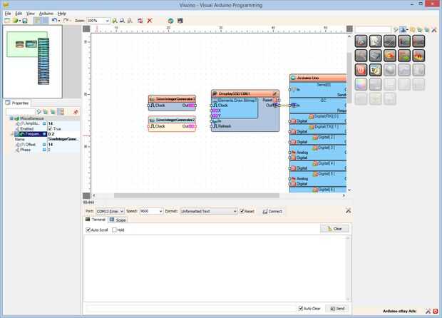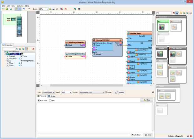 2. En el Inspector de objetos, establezca el valor de la propiedad de "amplitud" del componente SineIntegerGenerator2 "14" (foto 2)