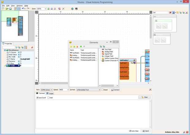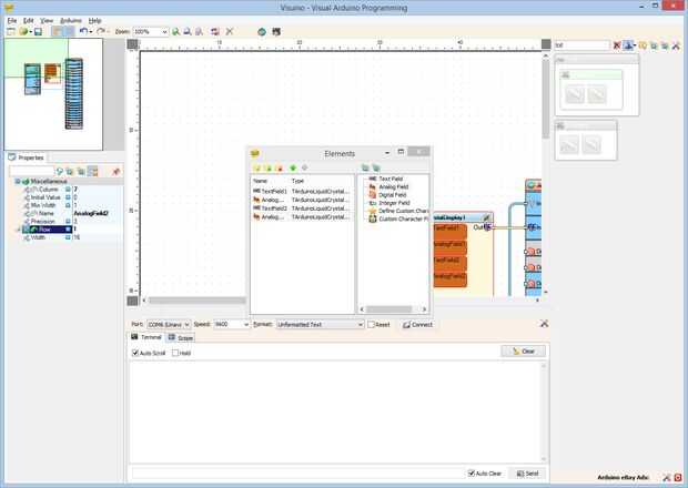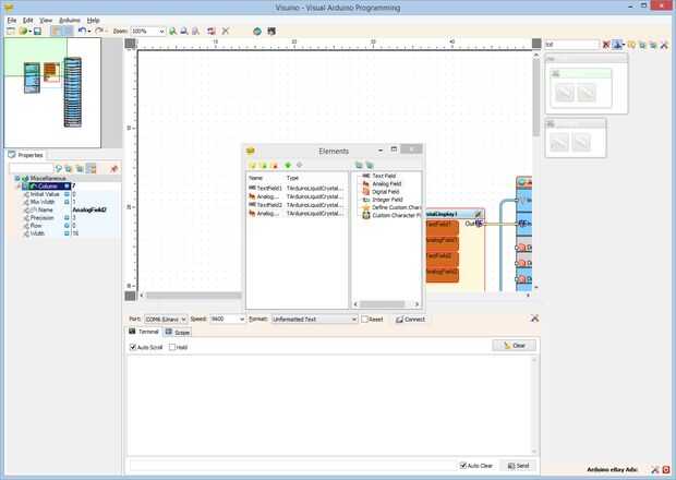 - Seleccione el "Campo analógico" en la ventana derecha del editor de "elementos" y haciendo clic en el "+" botón a la izquierda (foto 1)