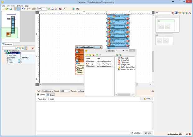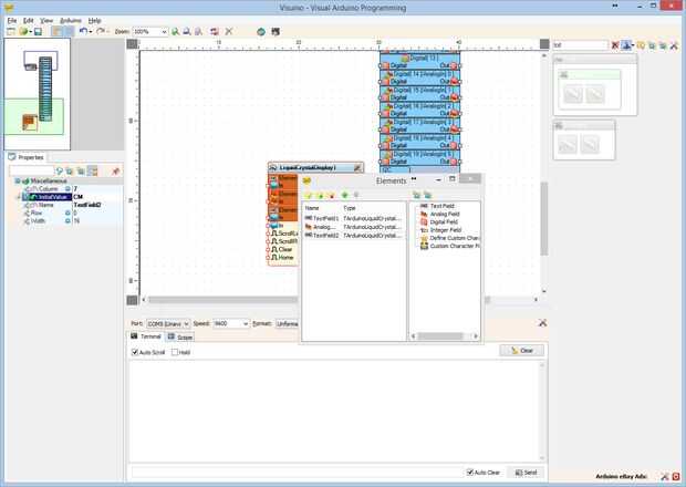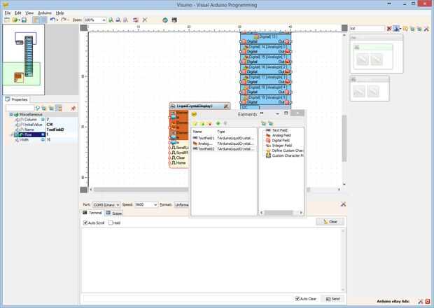 Arduino Nano: I2C pantalla LCD 2 X 16 Visuino