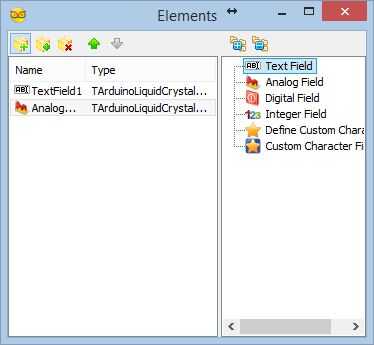 1. Agregar campo de texto para el texto de unidades seleccionando el "Campo de texto" en la ventana derecha del editor de "elementos" y haciendo clic en el "+" botón (foto 1)