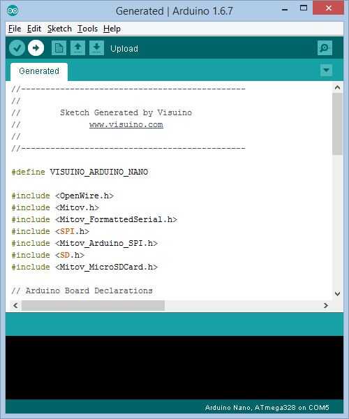 Paso 6: Generar, compilar y cargar el código de Arduino