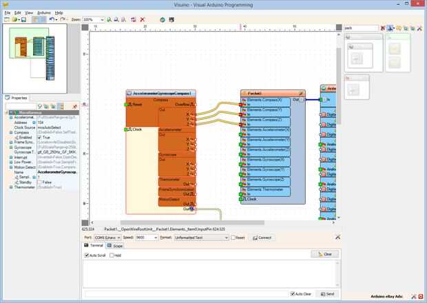 Arduino Nano: Sensor acelerómetro giroscopio MPU9250 brújula I2C con Visuino (9 / 11 paso)