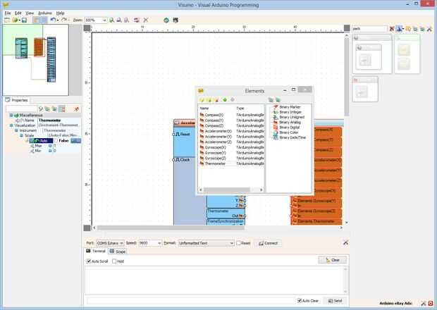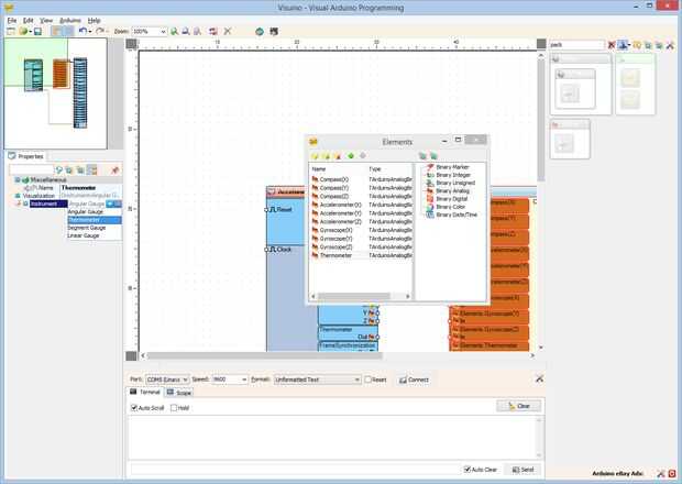 El Visuino por defecto puede mostrar los elementos analógicos del componente paquetes en calibres. Sin embargo es bueno para mostrar la temperatura en el termómetro. Visuino permite la personalización de la forma que se visualizan los elementos analógicos.