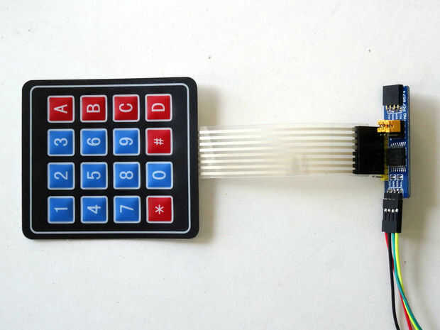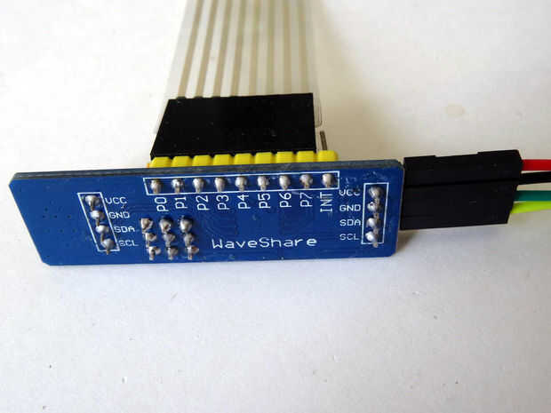 Conecte el conector de Teclado de matriz a los pines P0 a P7 del PCF8574/PCF8574A GPIO módulo (foto 1 y 2)
