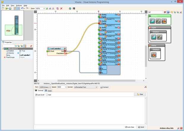 3. Conectar la clavija "ChipSelect" del componente LedController1 en la entrada "Digital" del canal "Digital [10]" del componente de Arduino (foto 3)