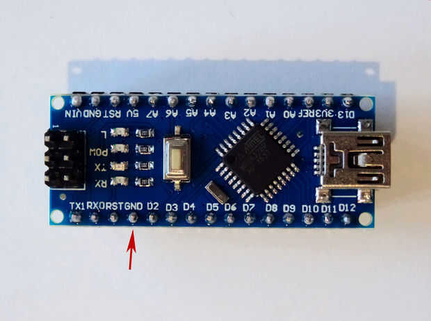 6. Cuadro 6 muestra dónde está el conector de tierra del Arduino Nano