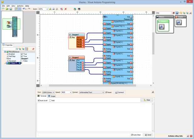 Arduino Nano y Visuino: Control de 2 motores paso a paso con Joystick (7 / 11 paso)