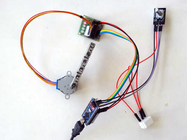 Si usted gire el Codificador rotatorio, el Motor de pasos girarán en la misma dirección que el codificador como se puede ver en el Video.