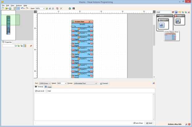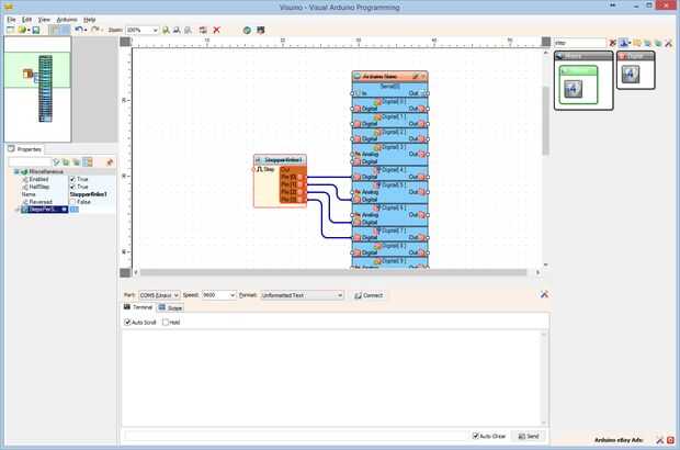 Arduino Nano y Visuino: Control de Motor paso a paso con los botones (4 / 12 paso)