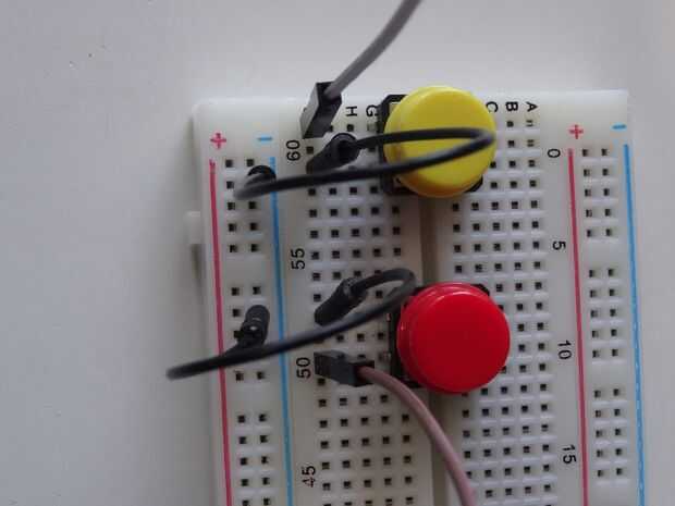 2. Conecte el extremo macho de uno de los cables macho-hembra(cable blanco) a un extremo de uno de los botones (foto 1)