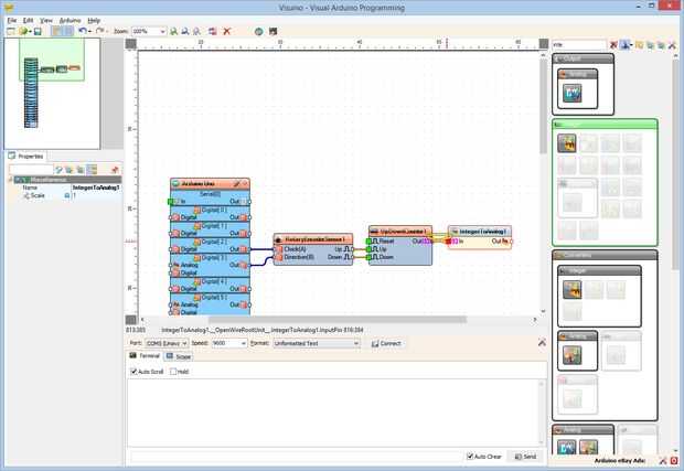 Paso 8: En Visuino: agregar y conectar entero a analógica por componentes