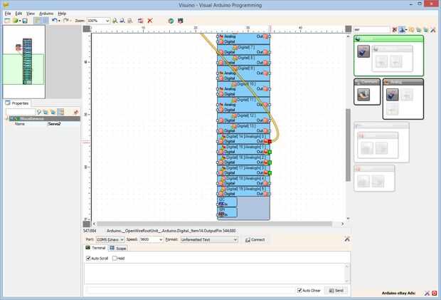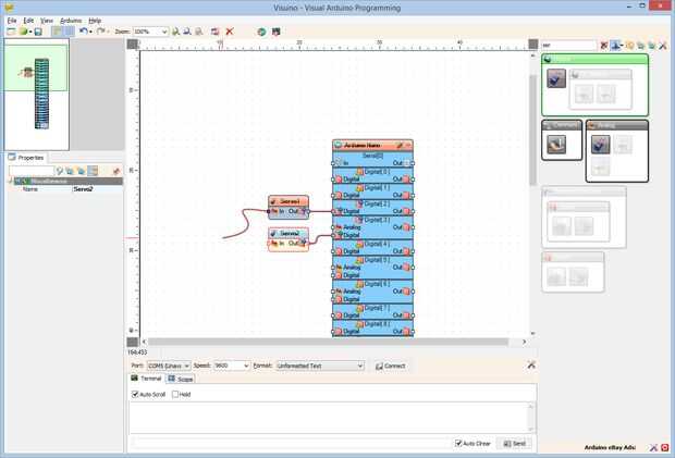 Arduino Nano y Visuino: Control de Servos con Joystick (7 / 9 paso)