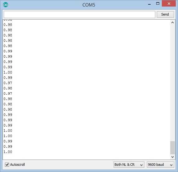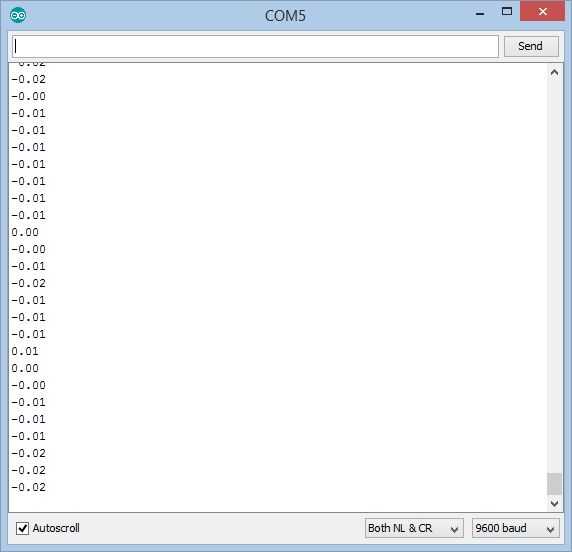 Si abres el Terminal de serie en el IDE de Arduino o Visuino, y no hay ningún peso en la celda de carga, verás valores alrededor de cero aparece (foto 2)