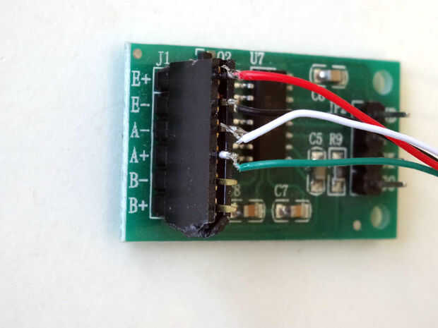 1. Conecte el cable rojo de la Célula de carga (foto 1) a E + pin del módulo HX711 (foto 2)