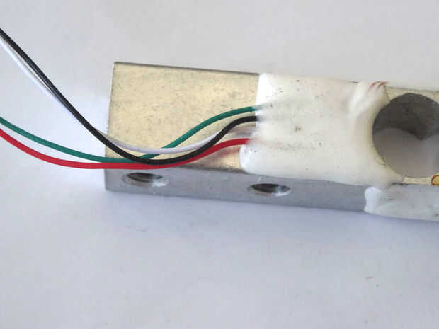 3. Conecte el cable blanco de la Célula de carga (foto 1) con el A - conector del módulo de HX711 (foto 2)