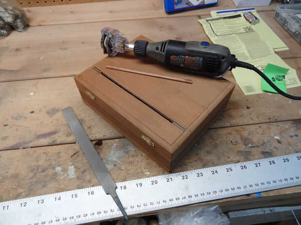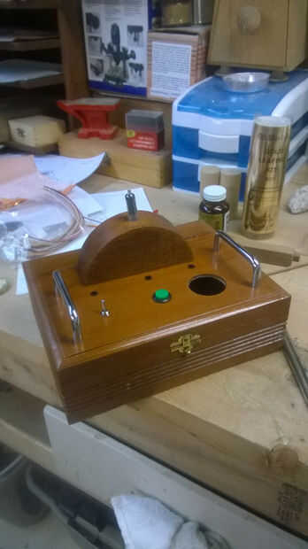 Para el cojín de Señor, solía dos diferentes tamaño clave sierras cortar la caja y cortar un círculo de chatarra que encajaría muy bien en el agujero. Entonces usé algo de oro que tenía puesta alrededor y cubiertas de la almohadilla del círculo con el oro el hojear. Luego me shellaced con muchas capas. Cuando hago uno nuevo de estos, lo hará de manera diferente y adquirirá una moneda grande o tal vez un símbolo de una arcada.