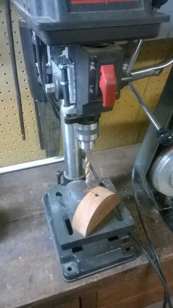 Para soportar el numitron un poco, tomé un pedazo de madera de desecho y corte en forma de curva con una sierra de banda. I lo lija, perforó un agujero para los cables de numitron, utiliza un avellanador para biselar ligeramente superior del agujero para que la numitron encaja muy bien y luego shellaced.