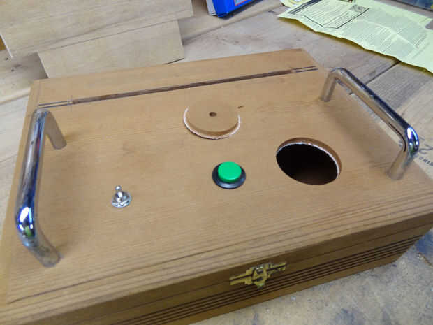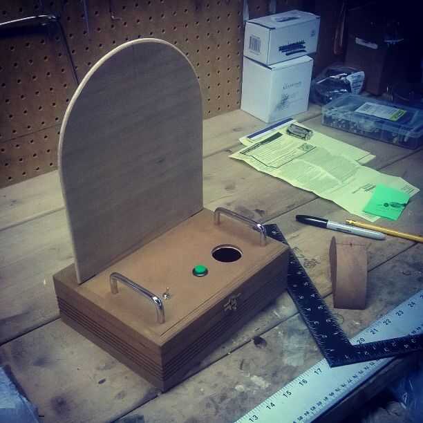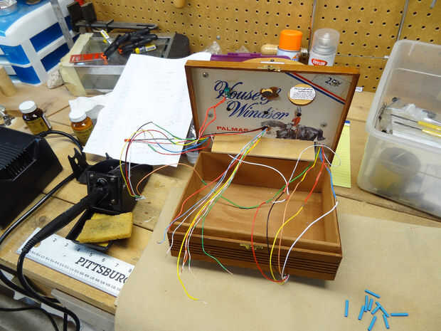 He seleccionado una caja y planeó un diseño. Tenía algunos viejos mangos de gabinetes de cocina que he decidido utilizar en este proyecto, y planifiqué donde sería el sensor y botones. Yo esbozado en mi cuaderno de proyecto y medido en la caja dónde perforar los agujeros. Pruebe la colocación de todo varias veces y luego shellaced la caja. Me gusta la laca de spray - es fácil, natural, huele agradable y añade un acabado agradable a la caja de cigarro.