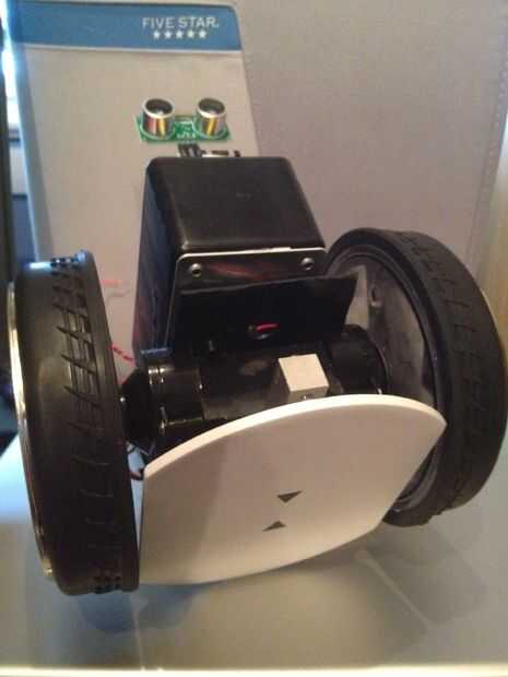 El diseño fue bastante fácil para mí decidir ya que mis opciones eran limitadas. Mediante el cuadro de proyecto plástico de radioshack, conectado el servo a la tapa de la caja, tiraron mi Arduino dentro y atornillado en algún soporte que tenía puesta alrededor al servo para el sensor de ultrasonidos. Poner un interruptor en el lado de la caja y me funcionó los cables del bloque de batería de coche RC el interruptor y entonces el escudo del motor de mi arduino.