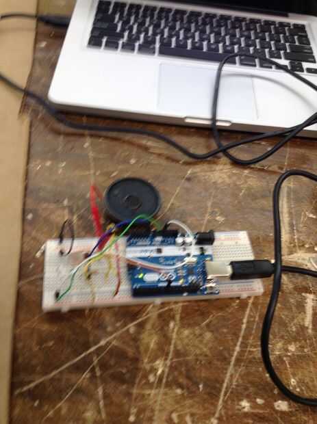 El primer paso es recoger los suministros que usted necesitará. Usted necesitará un arduino, protoboard, unos cables de puente, un altavoz de 8 ohm, una batería, una fotocélula, cinta adhesiva, cartón, resistencia de 100 ohm, resistencia de ohmios de 4,7 k, un cable USB y un ordenador portátil.