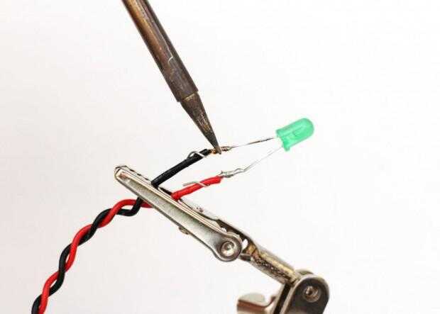 Luego había trenzado de cada alambre alrededor de las patas del LED y los soldados juntos. Si usted necesita un repaso sobre cómo soldar revisa este Instructable.