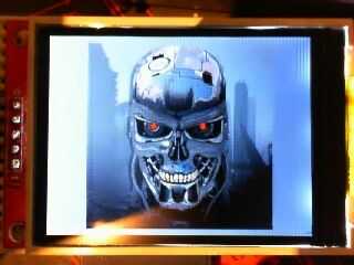 Las funciones estándar de GFX (dibujo, texto, etc.) pueden ser utilizadas y superpuestas en las imágenes dibujadas. Como ejemplo trivial el terminador de ojos son hechos para más brillantemente una luz roja en el bosquejo de la demostración de ILI9341_tftbmp trazando círculos rojos brillantes en el lugar apropiado. Otra vez la pintura puede utilizarse para ayudar a calcular las coordenadas al trazar sobre las imágenes.