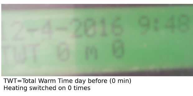 Si el botón se pulsa en el modo Normal: muestra la fecha/hora actual y el tiempo total que la calefacción estaba encendida el día anterior, así como el número de veces que la calefacción estaba encendida el día antes.