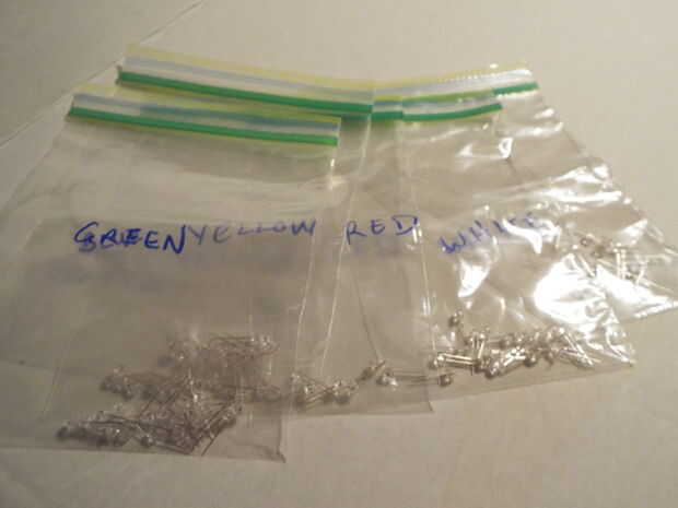 LEDs (diodos emisores de luz) vienen en varios colores, formas, alambres o tipo de montaje en superficie y brillo.