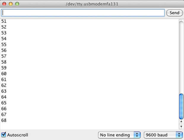Conectar el potenciómetro de modo que los pernos fuera conectan a 5V y tierra (orientación no importa), y el pasador central se conecta al pin A0 en el Arduino. Ejecute el siguiente código y observe la salida de la serie.