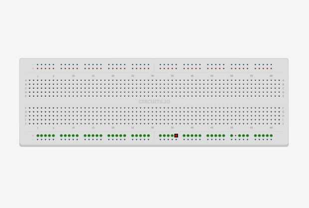 El resto de los agujeros de la protoboard se agrupan en filas de cinco en el centro de la placa (imagen 3). Esto es donde se conectará los componentes eléctricos entre sí a los circuitos de forma.