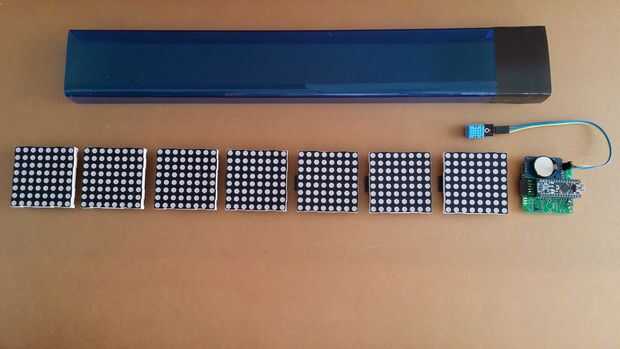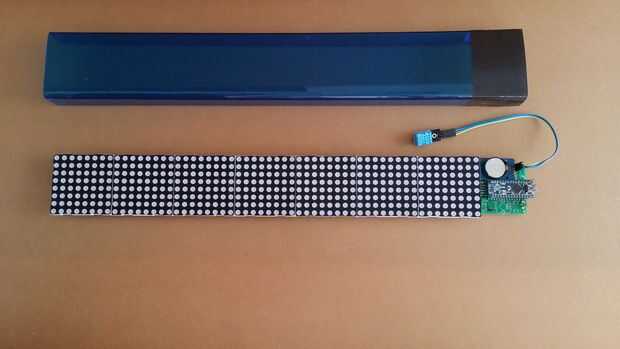 Todavía no hemos construido un recinto adecuado para el proyecto. Simplemente ponemos el 7 matrices largo display junto con una funda protectora color azul sobre ellos para ver el efecto de pantalla y estamos muy por favor con el efecto. Estamos seguros que hay muchas personas útiles y creativas que podrán llegar a estético recintos para embarcarse en este proyecto.