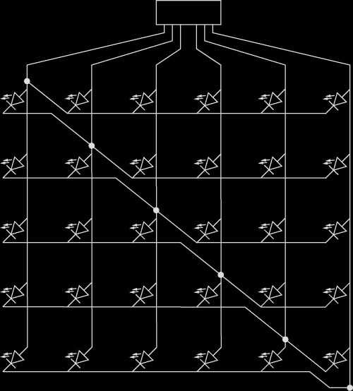 Esto debería ser bastante sencillo si sigues la red adjuntada esquemática. Sin embargo, también es extremadamente desordenado debido al limitada área que vas a tener que trabajar, si utilizas un perfboard 4 x 6 pulgadas como tengo. Es una buena idea para probar cada LED antes de comenzar, porque va a ser muy difícil determinar si una falla está debido al cableado o de lo contrario más adelante. Usted podría comenzar estableciendo 6 cables verticalmente como las columnas verticales y filas horizontales durante el uso de puentes cuando sea necesario y por supuesto, mucha cinta aislante para evitar cortocircuitos.