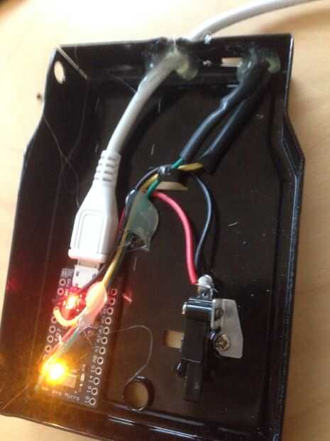 El pegamento caliente es tu amigo. Lo utilizado para asegurar el cable USB y cables de Arduino. Vuelva a montar la tapa y la Junta está lista para la programación.