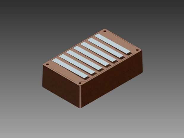 Las teclas del piano fueron diseñadas para que descansaría sobre los interruptores, por lo tanto, por qué son ángulos. Hice hueco para reducir los residuos de filamento 3D innecesario, y da las claves de un moderno look, instalación de un piano electrónico. Hay un agujero de 2,5 mm en la parte inferior de las teclas donde la varilla de 2mm pasarán para que puedan moverse libremente hacia arriba y hacia abajo.