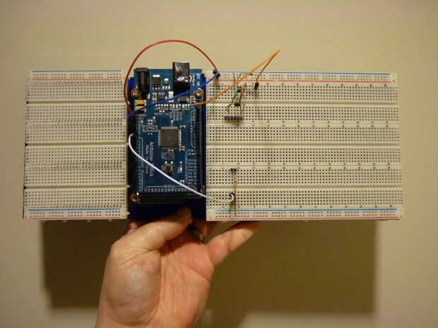 En el futuro espero que alguien descendido breadboards que vienen con Velcro ya en ellos, o tienen sólo un simple plástico forro en vez de barras expuestas. Esto sería mucho más fácil.