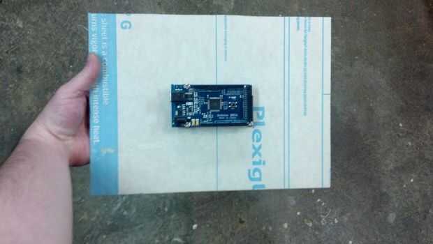 Una vez que la plataforma principal fue cortada, corté un puñado de pequeños pies cuadrados para montar las cosas a la Junta. No quería que los separadores de poke por otro lado, y no quería que los orificios en la parte inferior de la plataforma. Perforó y aprovechar estos pies, montado en la placa Arduino y encolar en su lugar. Esto ayudó a alinear los pies y soportes para exactamente donde deben estar para el Arduino.