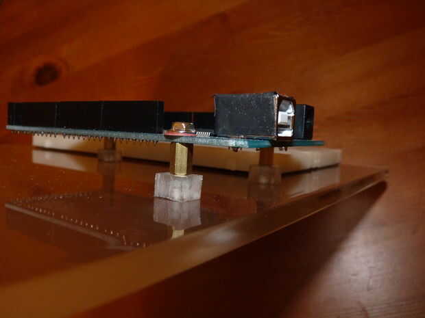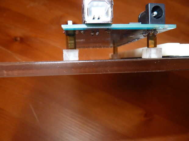 Me olvidé de tomar fotos de este paso antes de que las tablas fueron montadas sobre el plexiglás. Probablemente no quieres algo montado en la Junta hasta después de que se derritan los bordes lisos.