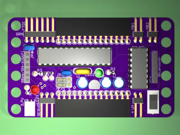 - Puentes para conectores de comunicación Serial con cualquier RX, pin TX en Arduino (D0, D1) o SoftwareSerial RX, TX que asigna a D2, D3 pines de Arduino.