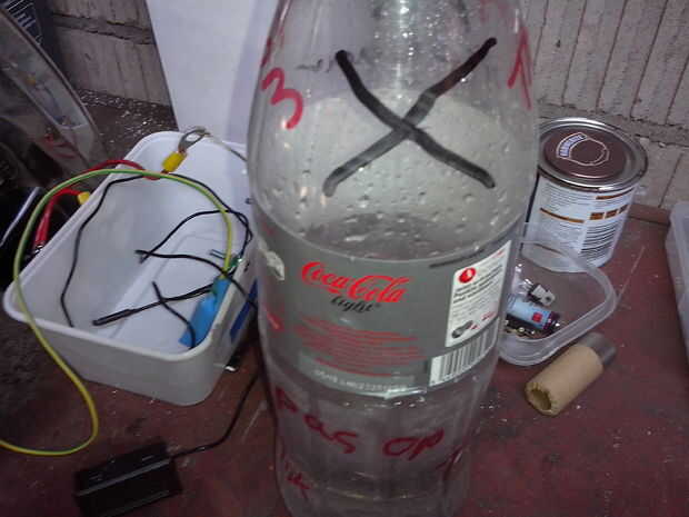 Ahora tu grabador y mezclarlo con agua regular. La proporción de la mezcla depende el grabador que usas, estoy utilizando persulfato de sodio y mezclar 250 gramos de reactivo con 1L de agua. Ahora, vierta en el tanque de etch. Si está usando un calentador, esto será el tiempo para activar. Situado a unos 40/45 grados Celsius. El más caliente, más rápido se irá, pero por encima de 50 grados se degrada el grabador. Cambié manualmente el va a mi resistencia mediante un interruptor, si haces lo mismo, necesita una temperatura de 12 voltios medidor.