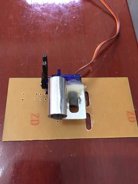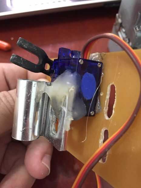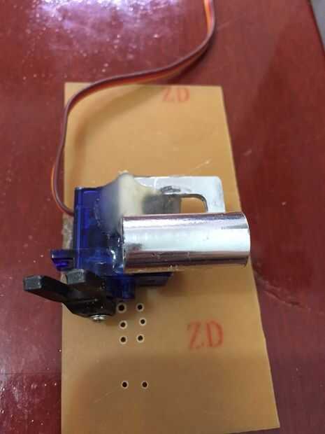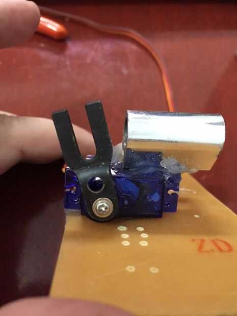 Pegamento del motor servo en un tablero de resina de 100 mm x 50 mm. hacer dos ranuras verticalmente unos 40mm desde el borde con 3,5 mm de ancho (se utilizará a la altura de pluma afinar). Pegar el tablero y servo motor... uso su experiencia para alinear su conjunto (esto es muy importante) la pieza que se levante la pluma fue tomado de una vieja máquina de coser, (se llaman "pinzas") una vez más usar sus habilidades para construir su propio pedazo de pinzas.
