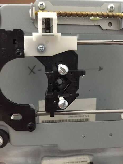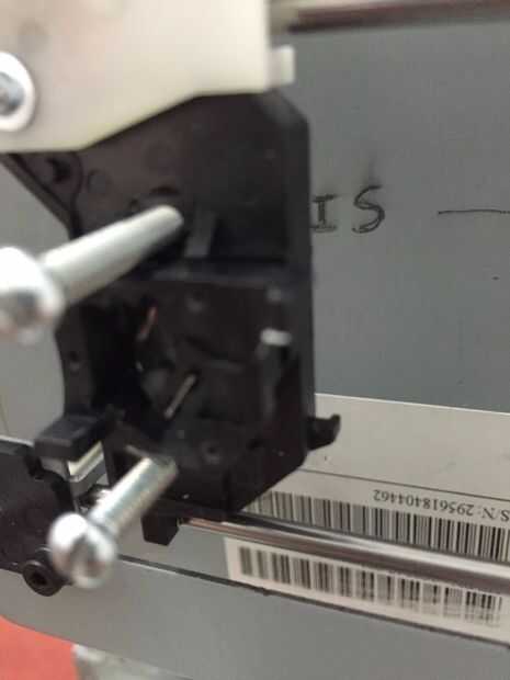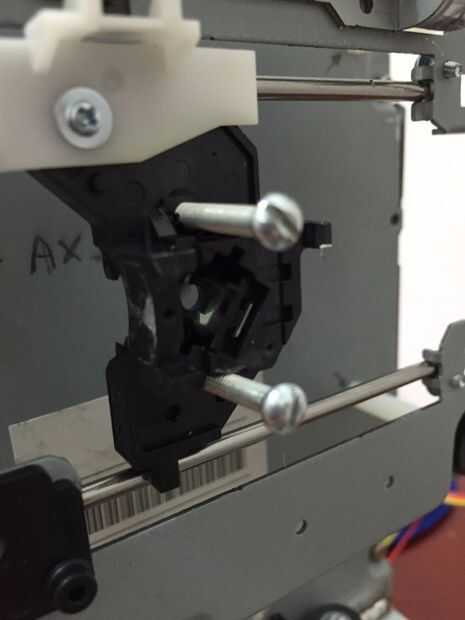 Ahora podemos montar el eje z sobre el eje x con dos tornillos y los agujeros y realizar un ajuste fino de la altura de la pluma.