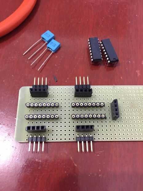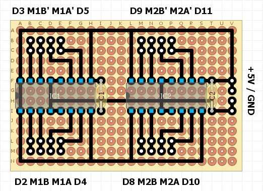 Material: 2 x L293D2 x zócalo para CI 16 pins 2 x 220nF poliester condensadores pinhead las barras con 4 pernos (en mi caso utilicé macho y hembra)