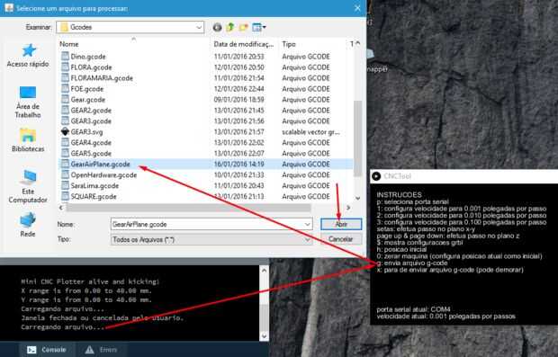 g - carga el G-Code a la máquina (en el repositorio de GitHub hay alguna prueba propósito archivos);