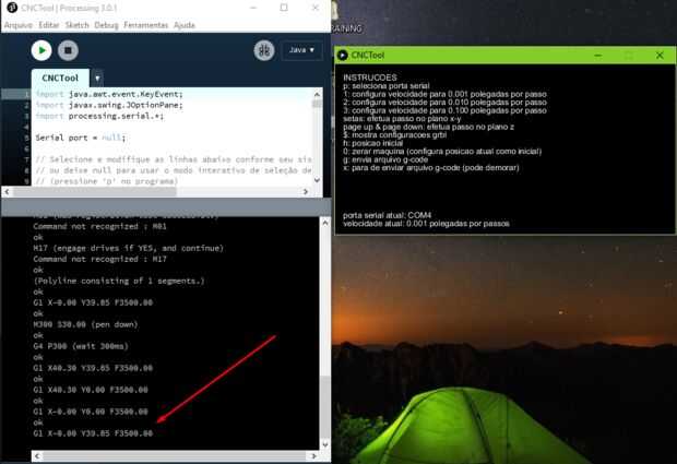 Todos los comandos G-Code realizados por la máquina pueden verse en tiempo real en la ventana de "Procesando".