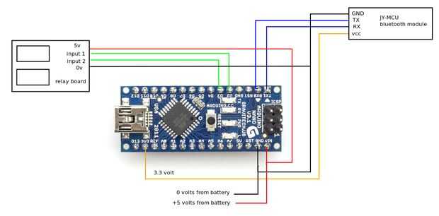 y los pines de salida digital 2 y 3 en el arduino se conectarse a la placa de relé como se muestra en el diagrama.