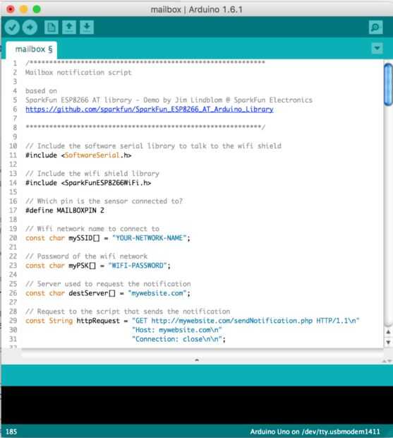 Nuestro dispositivo usa un script personalizado que viene con la biblioteca. Conseguir el script aquí, guardarlo en su computadora y abrirlo con el programa IDE de Arduino.