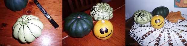 Para usted hacer escena de Halloween aún mejor puede comprar y decorar calabazas poco con todo tipo de dibujos.