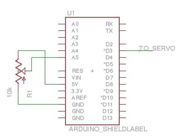Conectar el potenciómetro a la alimentación y tierra. Conecte la tercera pata al pin analógico 5. Esto crea un divisor de voltaje variable para la arduino a leer.