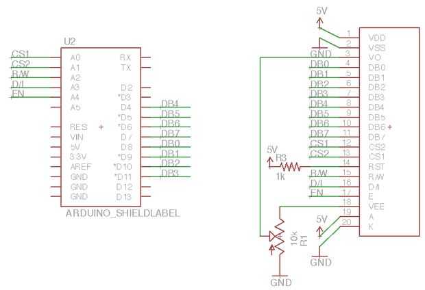 Asegúrese de obtener las conexiones de alimentación correcta. Si no lo hace podría dañar el GLCD.