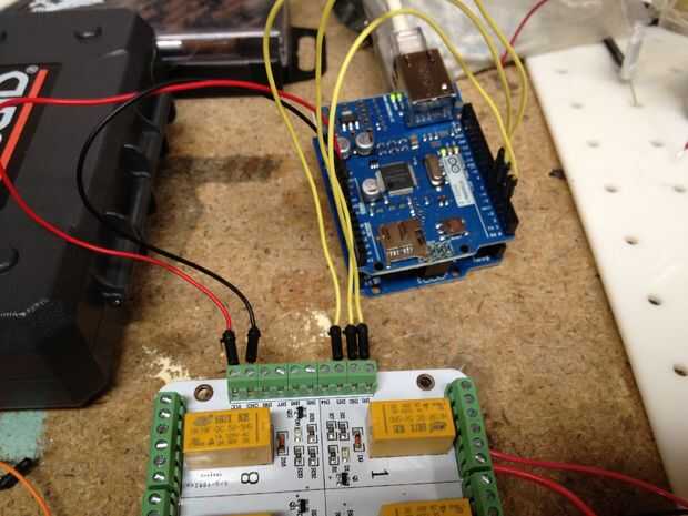 En este punto debe ser capaz de encender los pernos de arduino y ver activan los relés, que tienen un luz roja de estado para saber si están "en"
